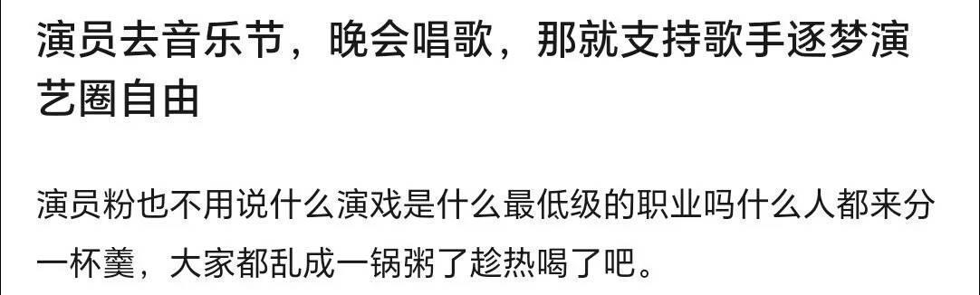 至于那些“没戏拍就硬闯音乐圈”的演员,建议重温李雪健的获奖感言:“名和利都让傻小子得了,苦和累却让焦裕禄受了”——既然吃着演员这碗饭,就请对得起舞台下的每一张门票!